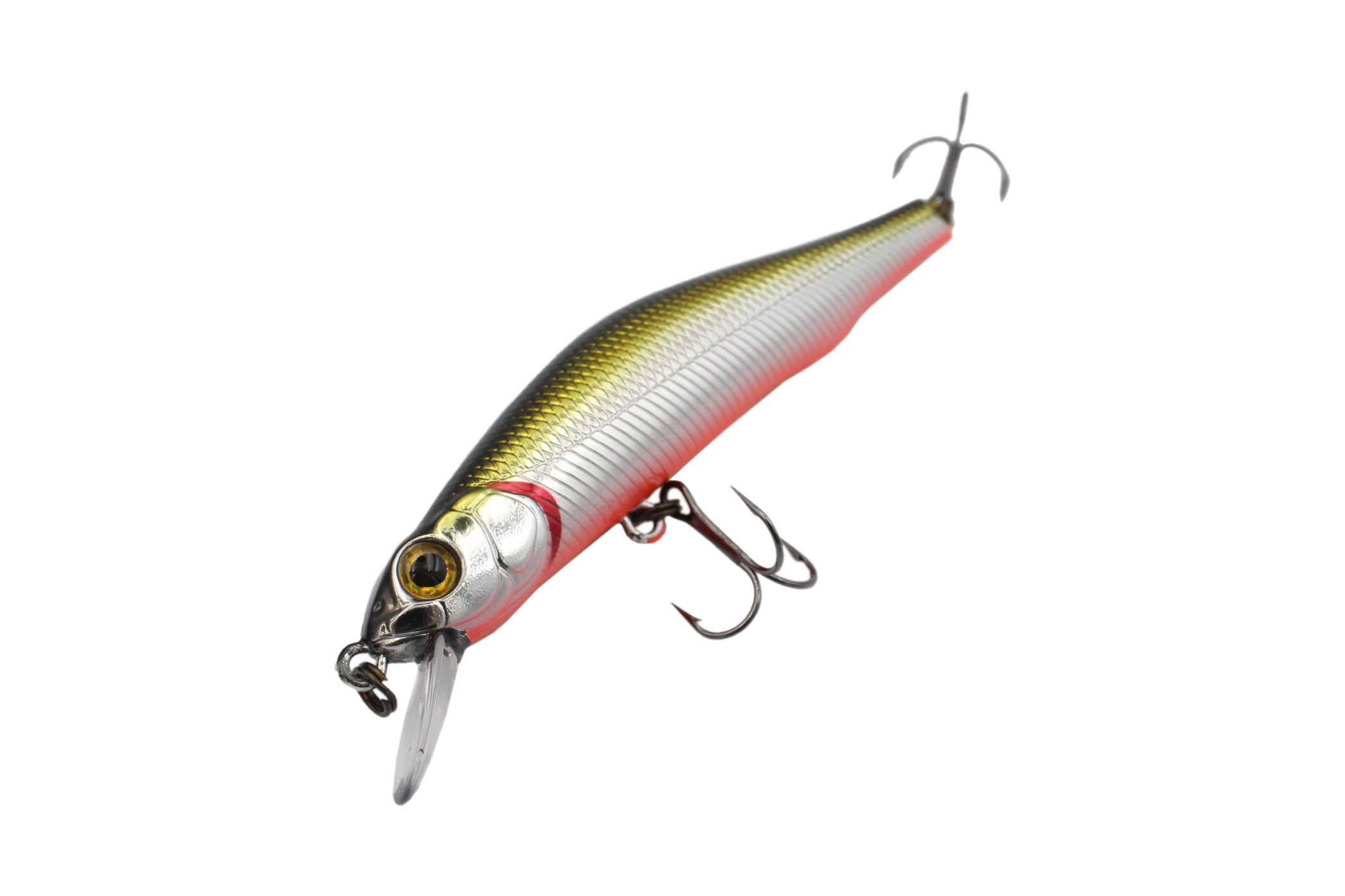 Все воблеры серии отличает удлиненное, прогонистое, округлое в сечении тело, воблер относится к классу минноу MinnowMinnow - похож на маленькую плотву. Данная форма является самой распространенной, она имеет стройную и длинную форму, и в основном предназначается для ловли поверхностной ловли, хотя бывают и глубоководные модели.Подробнее. Главная цель такого конструктива – придать приманкам обтекаемость, улучшить скольжение в воде. Воблер Zipbaits Orbit 80 SP-SR - мелкозаглубляющаяся модификация, лопатка небольшая, практически не мешает скольжению в воде, крепежное колечко установлено строго в носовой части.