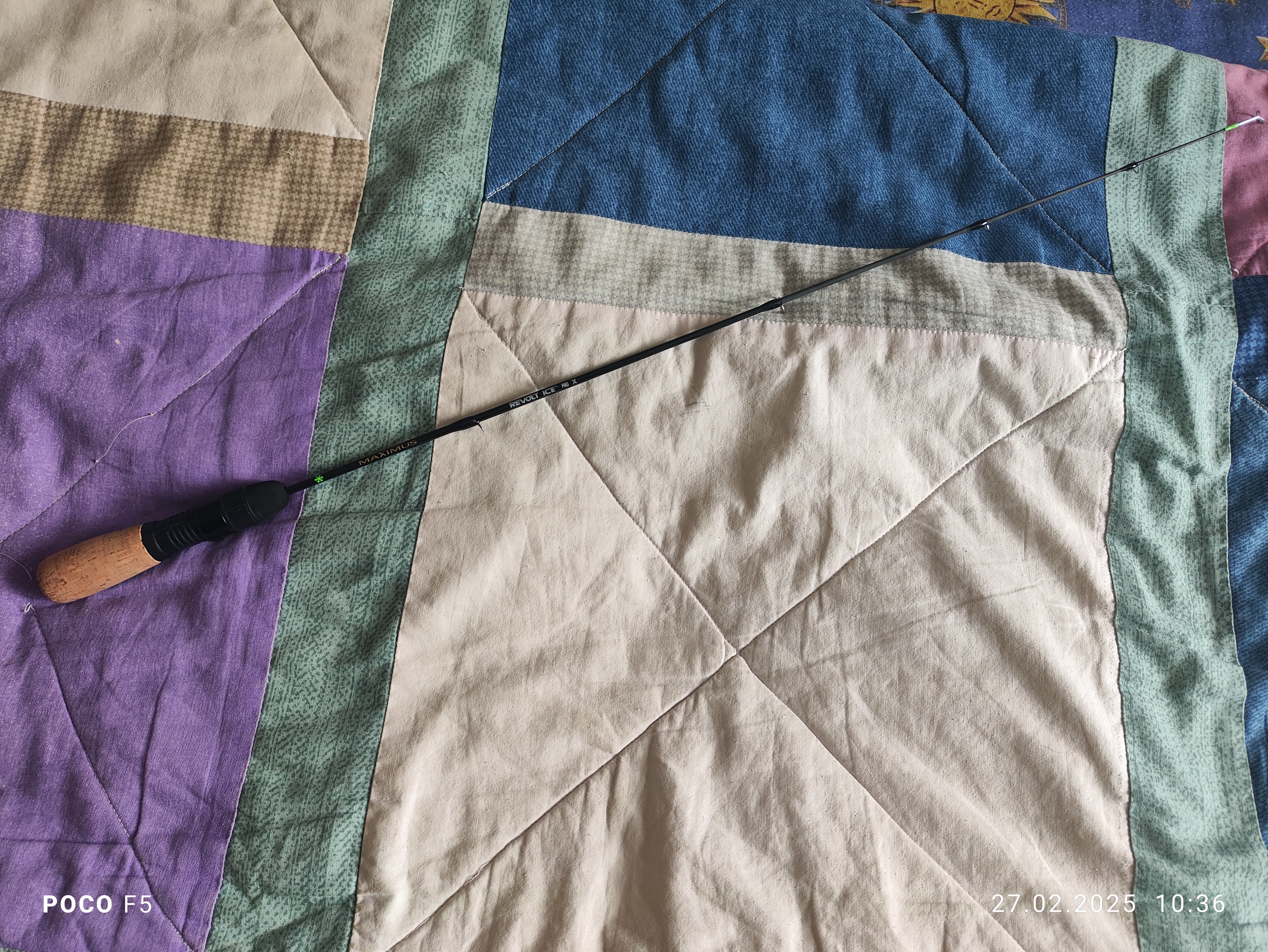 Удилище оснащено проволочными кольцами без вставки, что снижает вес и делает удилище более чувствительным. Ручка из пробки обеспечивает удобный и надежный хват в холодную погоду.