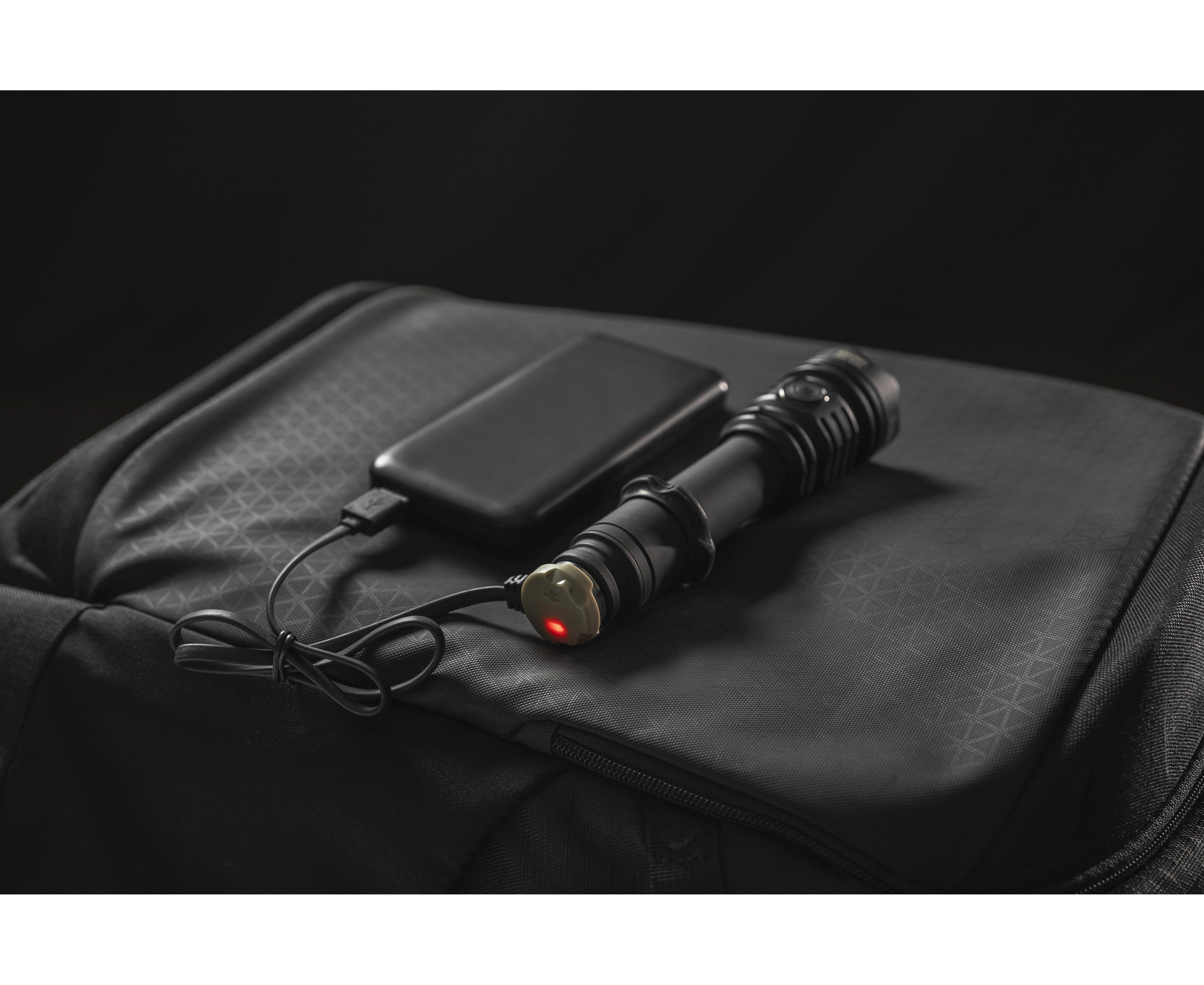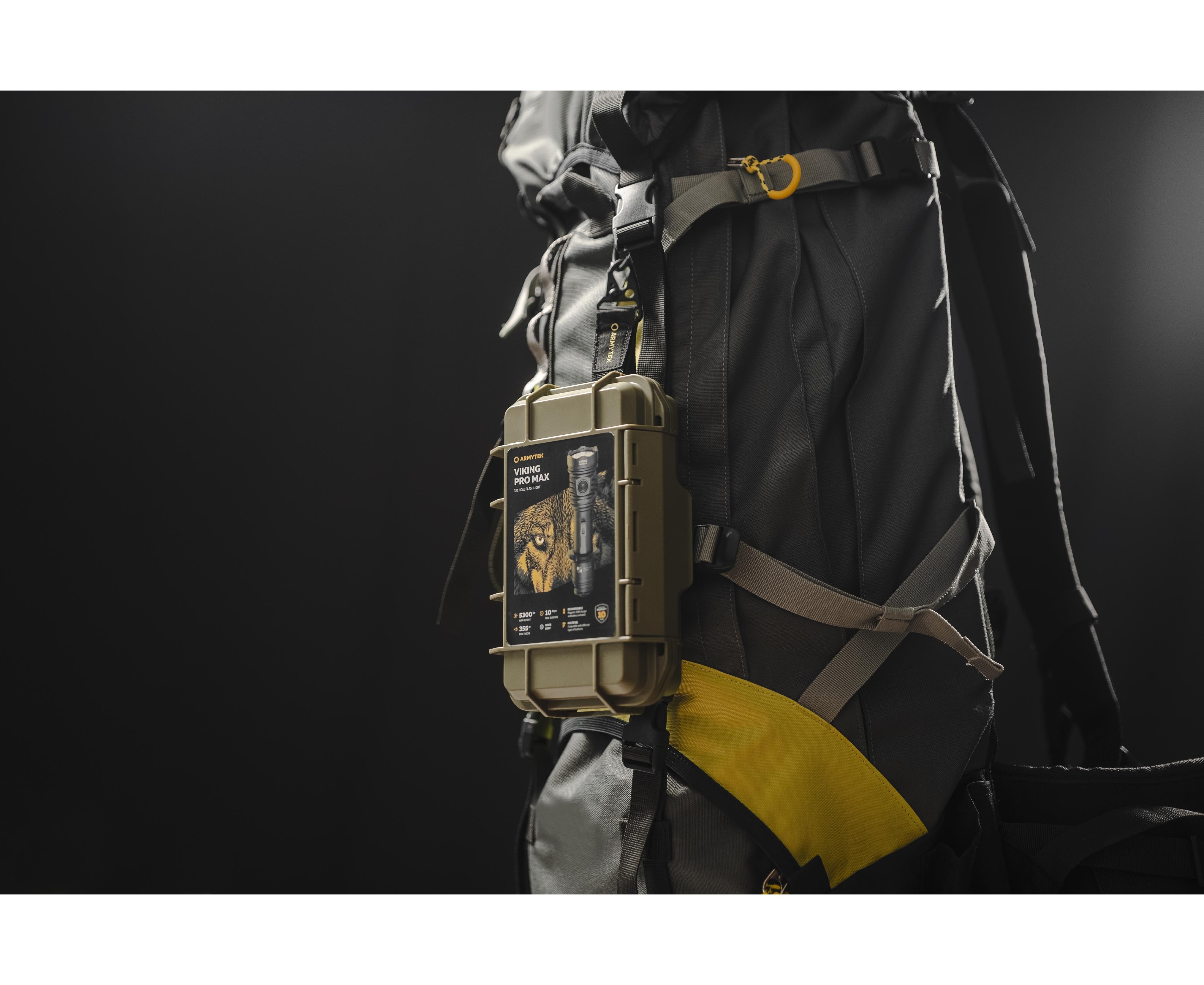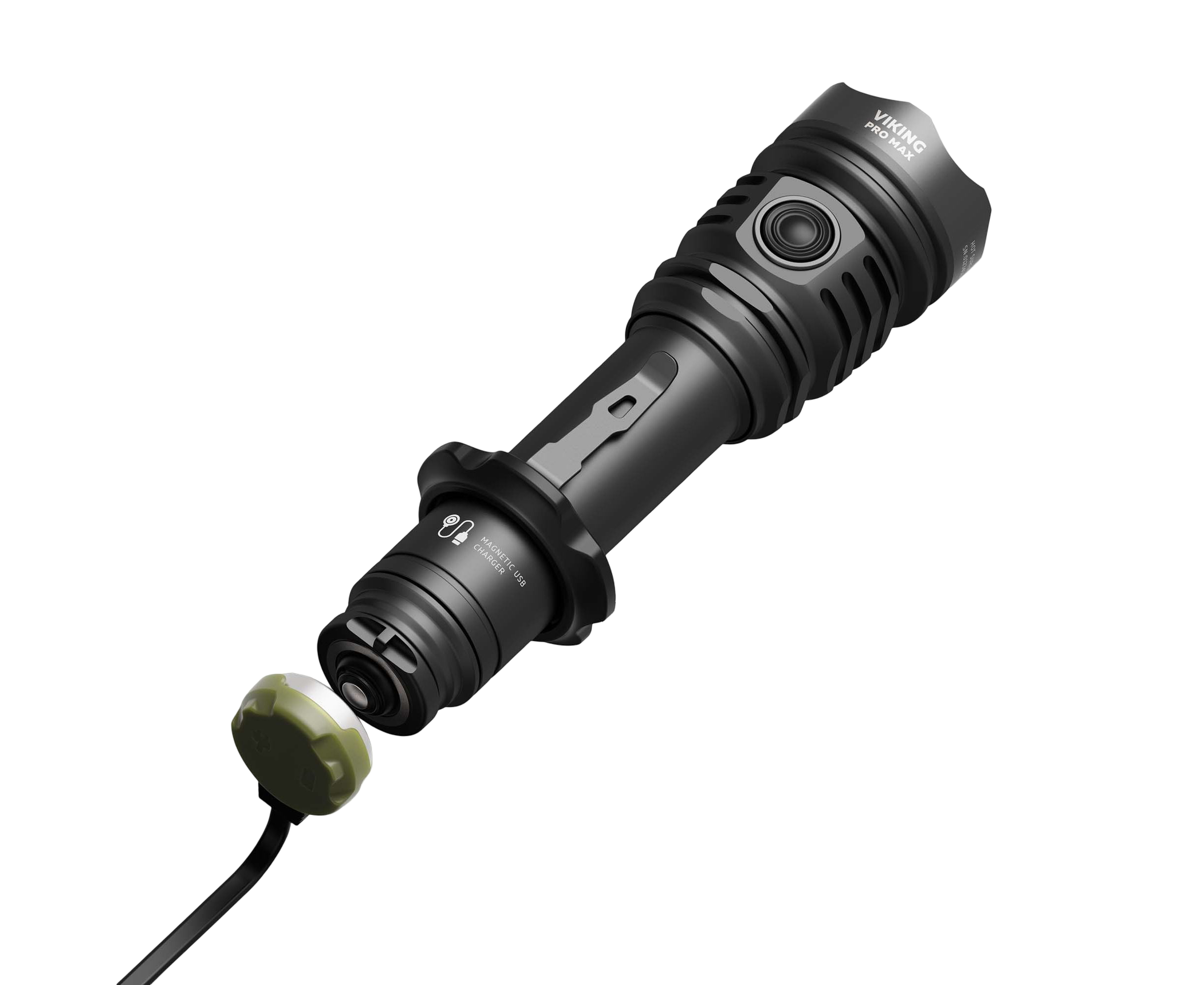 Viking Pro Max совместим со специально разработанной магнитной выносной кнопкой и оригинальными креплениями для подствольного применения. Модель работает не только на комплектном элементе питания, но и на любом стандартном аккумуляторе 21700 Li-Ion, а также, благодаря адаптеру, на аккумуляторе 18650 Li-Ion или на двух литиевых батарейках CR123A. Вариативность элементов питания позволяет значительно повысить автономность.