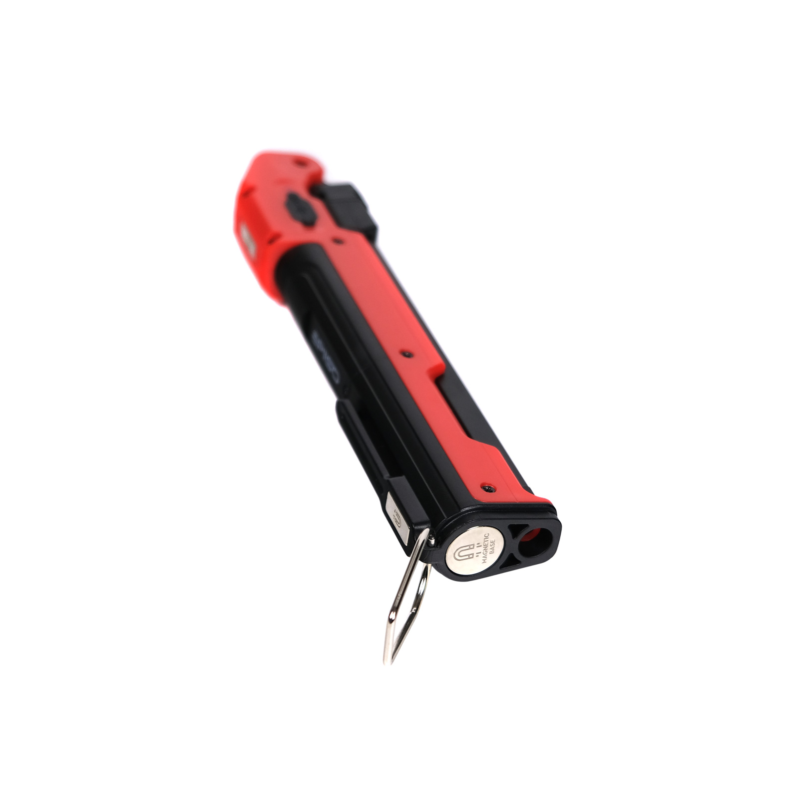 Конструкция фонаря EPILSO EPF-305 отличается высокой гибкостью и адаптивностью. Головная часть вращается как вертикально, так и горизонтально на 180 градусов, позволяя направлять свет в нужном направлении. Три мощных неодимовых магнита (два сбоку и один снизу) позволяют надежно закрепить фонарь на металлических поверхностях, освободив руки для работы. Складная металлическая петля для подвешивания расширяет возможности использования фонаря в различных ситуациях, например, при ремонте автомобиля или в походе. Несъёмная пластиковая клипса позволяет удобно закрепить фонарь на поясе или кармане.