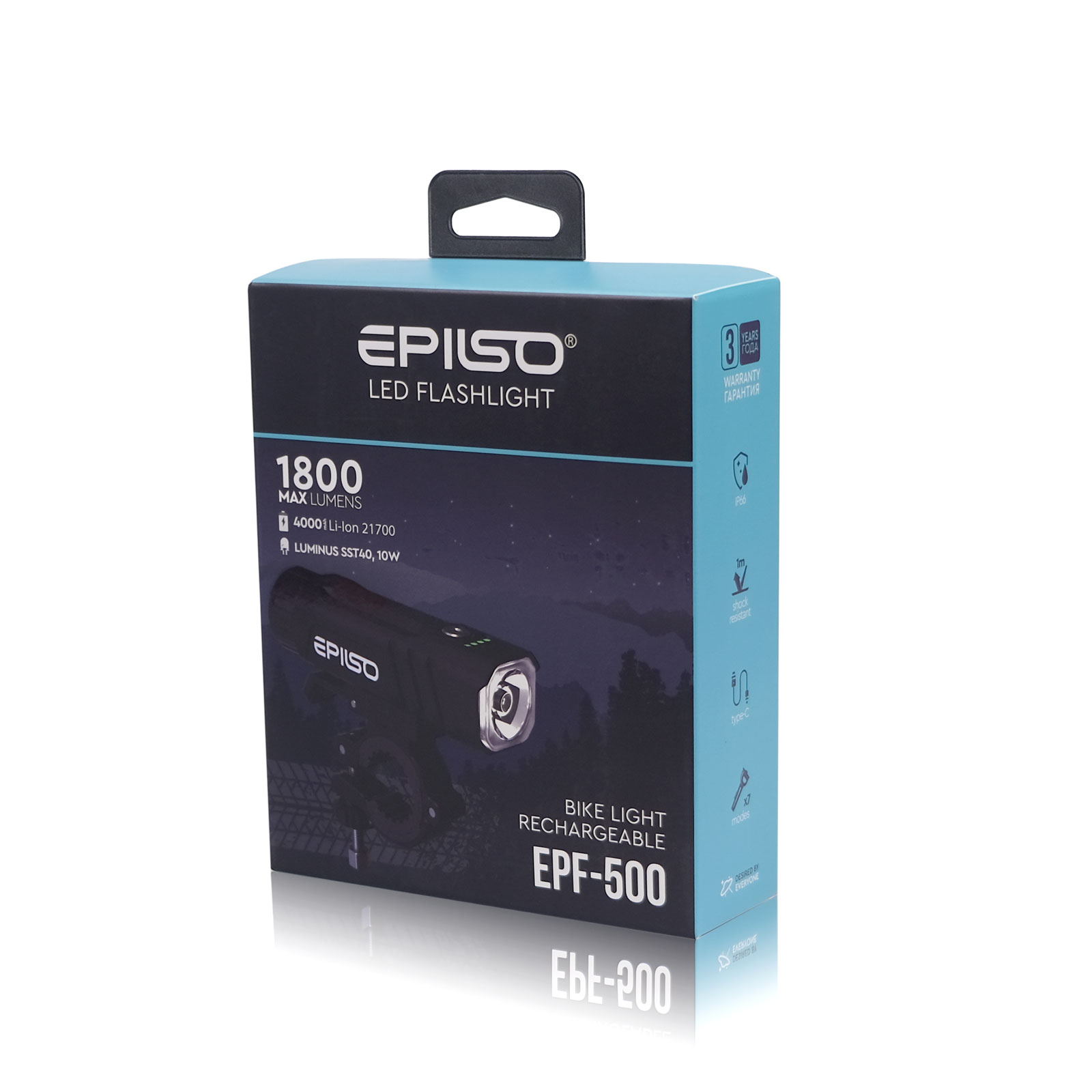 Сердцем EPILSO EPF-500 является светодиод LUMINUS SST40 10Вт, способный выдавать впечатляющую яркость до 1800 люмен. Это обеспечивает отличную видимость на значительном расстоянии, позволяя вовремя заметить препятствия и избежать опасных ситуаций. Съёмный аккумулятор 21700 Li-Ion ёмкостью 4000мАч гарантирует длительное время работы фонаря на одном заряде, а наличие USB TYPE-C порта с резиновой заглушкой обеспечивает быструю и удобную зарядку.