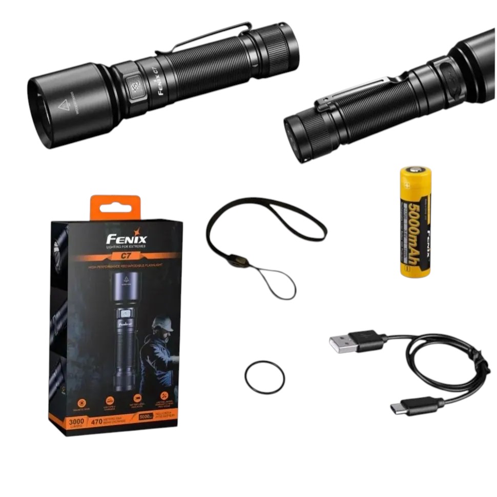 Фонарь Fenix C7 — это мощный и надежный осветительный прибор, предназначенный для использования в различных условиях, включая промышленное применение, туризм и повседневные задачи. Фонарь оснащен светодиодом Luminus SST70 с ресурсом работы до 50 000 часов, обеспечивающим максимальную яркость 3000 люмен и дальность освещения до 470 метров.
