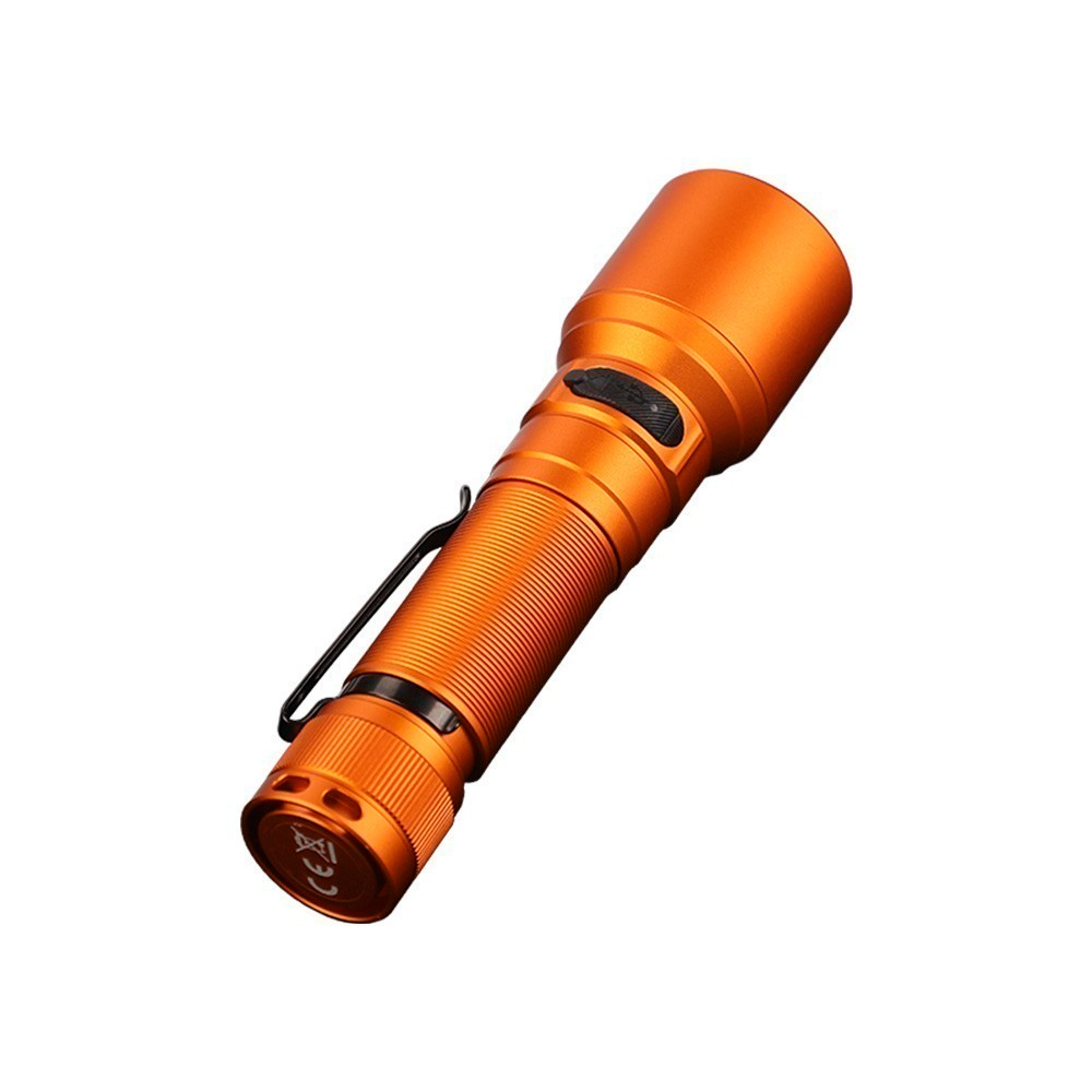 Корпус фонаря выполнен из прочного алюминия A6061-T6, что обеспечивает высокую устойчивость к механическим повреждениям и долговечность устройства. Фонарь имеет степень защиты IP68IP68 Полная защита от пыли. Защита от воды при кратковременном погружении в воду. При этом устройство может работать под водой до 30 минут.