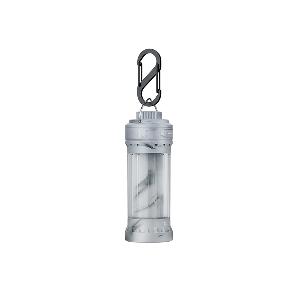 - Корпус: прочный и легкий, с защитой от пыли и влаги по стандарту IP65, что позволяет использовать фонарь в различных погодных условиях. Дизайн выполнен в белом цвете с текстурой, напоминающей мрамор.