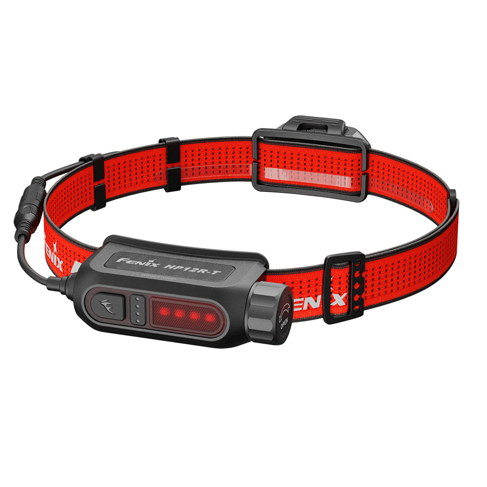 Главная особенность Fenix HP12R-T — раздельное размещение светового блока и аккумуляторного отсека. Благодаря этому вес на голове распределяется равномерно, что повышает комфорт при длительной носке. Фонарь оснащён двумя светодиодами: Luminus SST25 (холодный белый свет) и Luminus SST20 (нейтральный белый свет). Срок службы каждого светодиода достигает 50 000 часов, а температура света варьируется от 4000 до 6500 К. Помимо белого света предусмотрен красный — как на головном блоке, так и на аккумуляторном — для сигнальных и ночных задач.