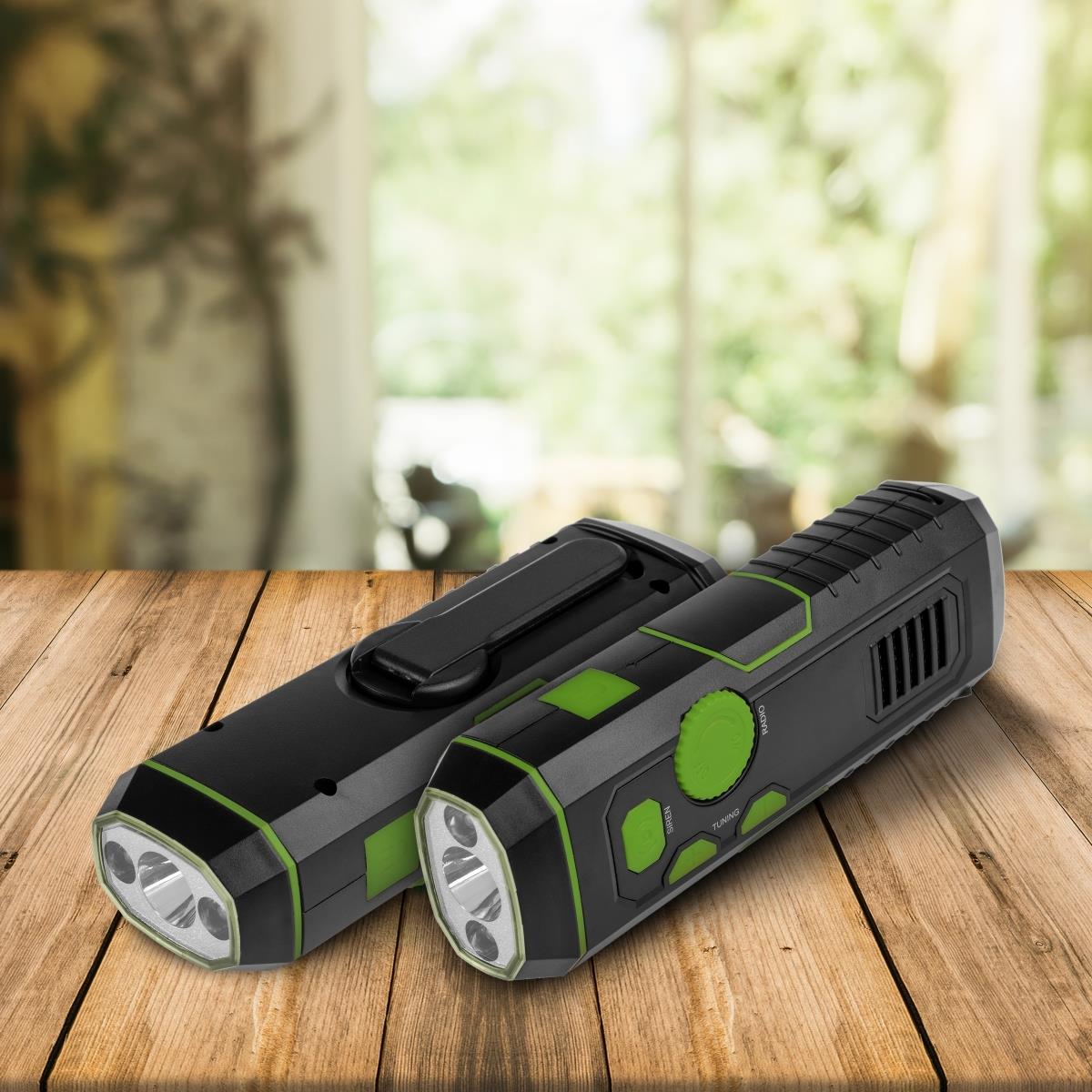 Фонарь с FM-радио позволит вам быть готовым к любым чрезвычайным ситуациям. Когда нет электричества, этот аварийный радио-фонарь может спасти вам жизнь. С ним вы никогда не останетесь без электричества: генерируйте энергию с помощью ручной рукоятки и заряжайте свой смартфон, чтобы быть на связи с теми, кто беспокоится о вас. Слушайте радио и узнавайте последние новости и прогноз погоды. Фонарик осветит путь в случае отключения электричества.