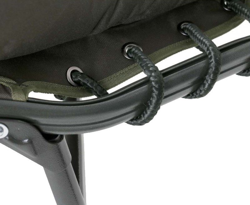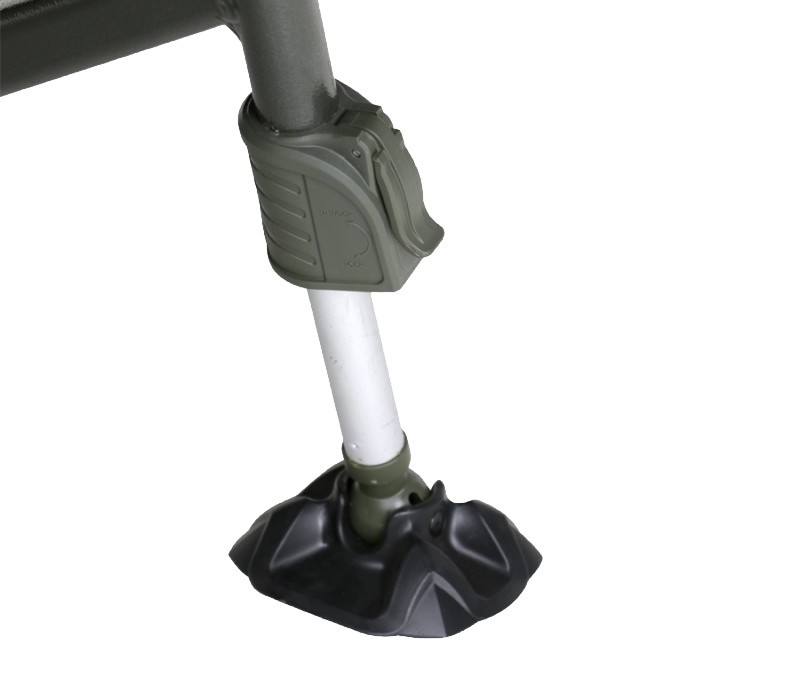 Благодаря шести телескопическим ножкам с надёжными фиксаторами, кровать легко устанавливается на любой поверхности. Широкие шарнирные пятки предотвращают погружение Diamond Comfort в мягкий грунт и обеспечивают стабильность на наклонных участках. В сложенном виде карповая кровать компактна и удобна для транспортировки, фиксируется стяжным ремнём с застёжкой.