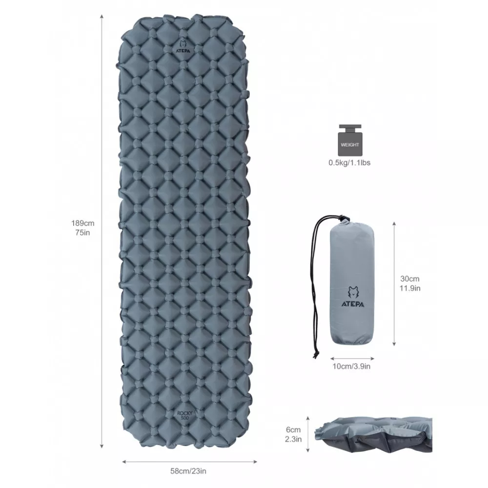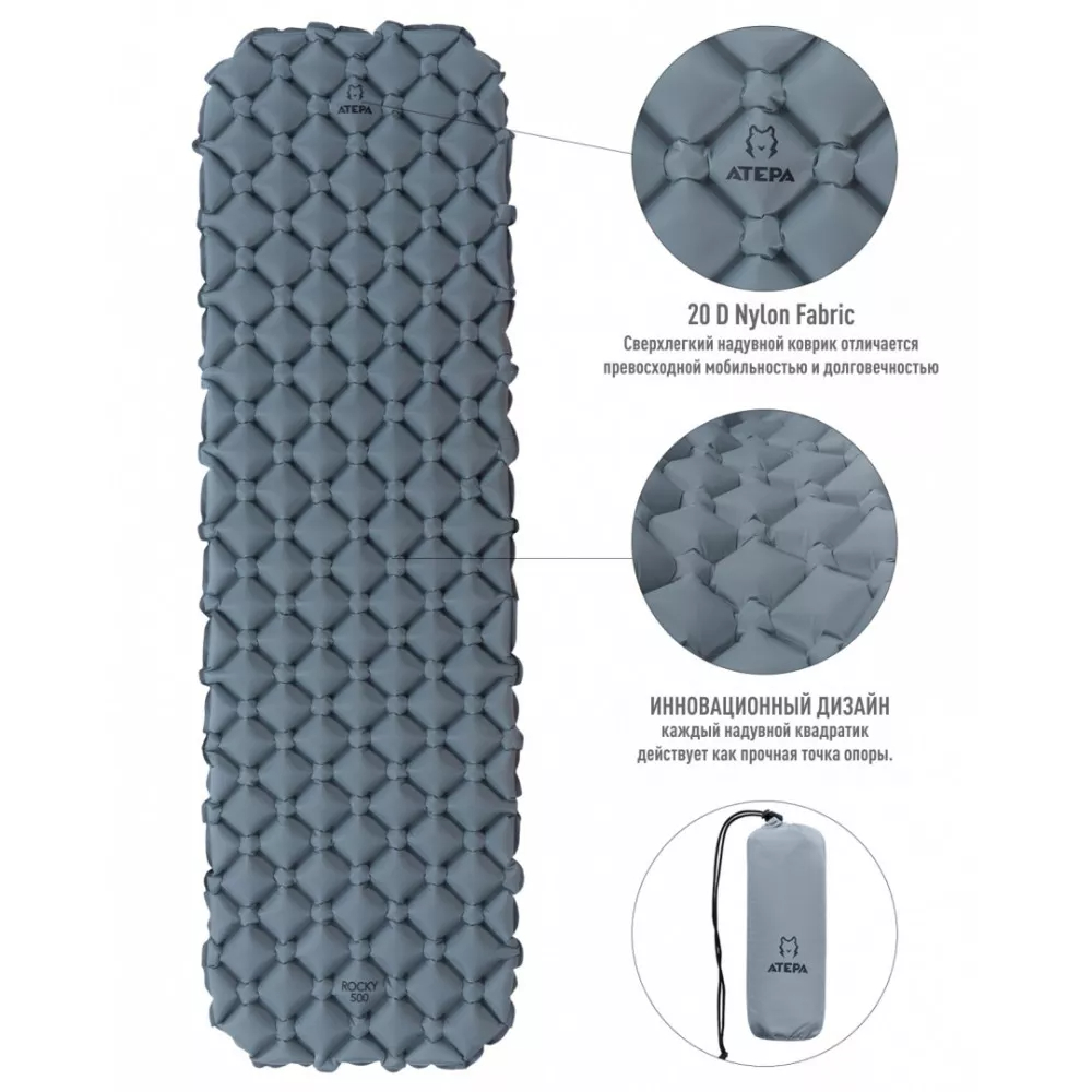 Надувные коврики Atepa - это отличное решение для всех тех, кто любит путешествовать налегке, но при этом любит комфорт. Полноценный надувной ковер весом всего 500 грамм, не превышающий в собраном виде по размеру надувную подушечку!