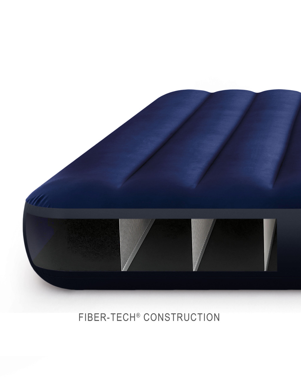 Изготовлен по технологии Fiber-TechFiber-Tech - это тысячи суперпрочных полиэфирных волокон. Они не деформируются с течением времени, поэтому надувной матрас прослужит значительно дольше. Даже если порвётся одна или несколько нитей, то это не скажется на структуре и форме надувной кровати или матраса.Подробнее . Внутренние перегородки сделаны из множества полиэфирных волокон, за счет чего он становится намного прочнее и легче.