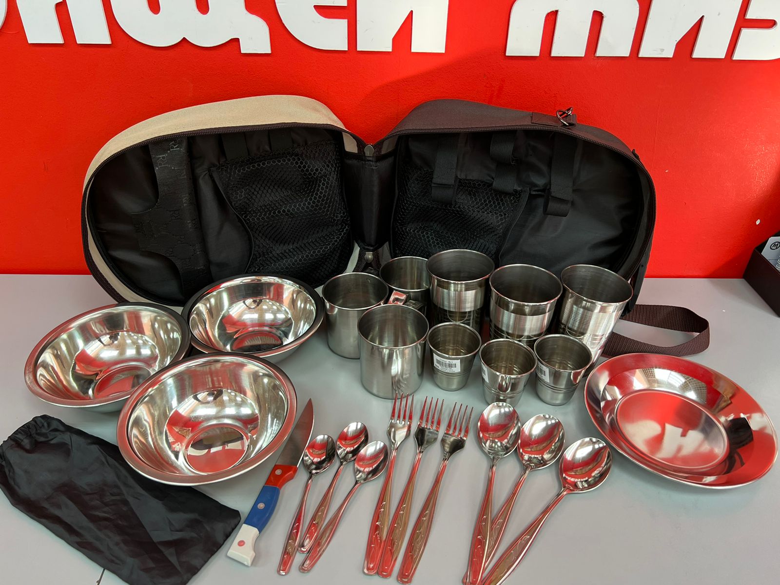 Набор укомплектован посудой из нержавейки высокого качества от надежного индийского производителя брендовой марки «555». Качество кемпинговой посуды этого бренда соответствует высоким мировым стандартам, именно поэтому она чрезвычайно востребована на российском рынке.