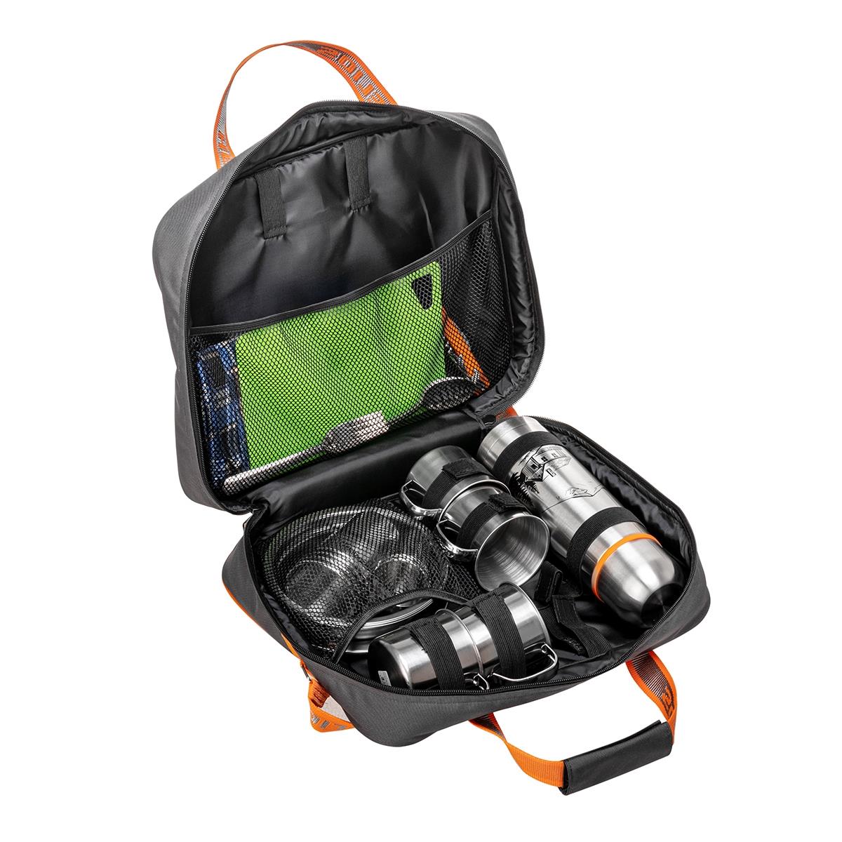 Удобный и компактный дорожный набор, он не займет много места при транспортировке, при этом в нем есть все, самое необходимое для отличного пикника на свежем воздухе.