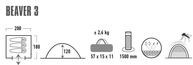 Просторная палатка Beaver 3 High Peak с тентом-козырьком над входом. Палатка почти квадратная по периметру (200х180 см). Фиберглассовые дуги продеваются через рукава на внешнем тенте, и палатка устанавливается за считанные минуты даже в дождь. Материал тента имеет полиуретановоеPU - особенностью полиуретана является возможность создания пористого материала, который может дышать и выводить влагу. Это особенно критично при изготовлении из PU материалов одежды и обуви.Подробнее покрытие и водонепроницаемость не менее 1500 мм водяного столба.
