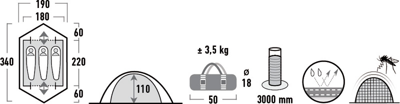 Материал тента: ПолиэстерPolyester - это синтетическая ткань, которая вызывает приятные ощущения при прикосновении к ней. По своей мягкости она сильно напоминает натуральный хлопок.Подробнее 3000 мм.