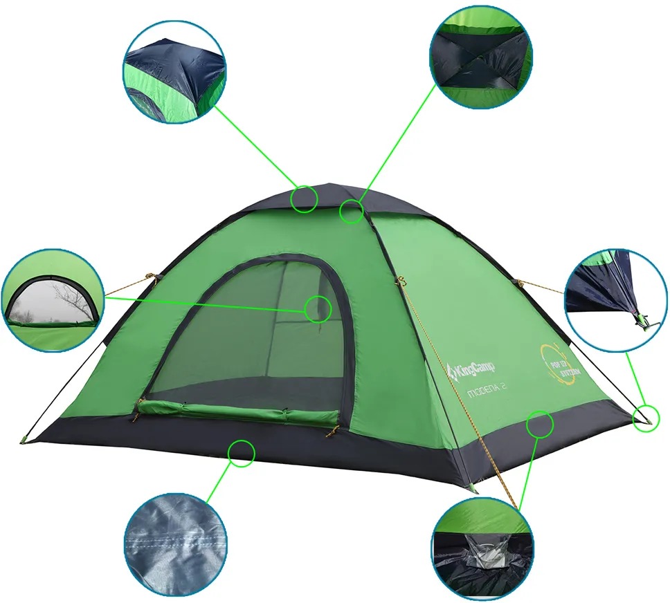 Тент: 190T PolyesterPolyester - это синтетическая ткань, которая вызывает приятные ощущения при прикосновении к ней. По своей мягкости она сильно напоминает натуральный хлопок.Подробнее с PU покрытием 300 мм/cм2
