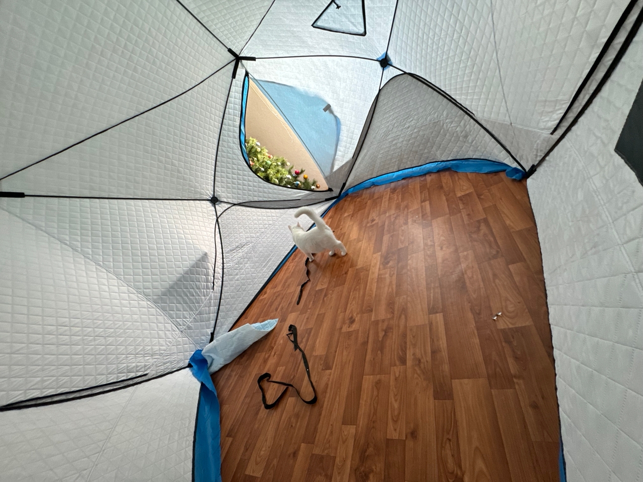 Из минусов могу отметить, что палатка занимает довольно много места в сложенном виде, особенно для тех, кто передвигается на небольшом транспорте. Также некоторые швы могли бы быть лучше проклеены — в сильный ветер чувствуется небольшое проникновение воздуха. Ну и хотелось бы чуть больше крепежей для дополнительной устойчивости на льду.