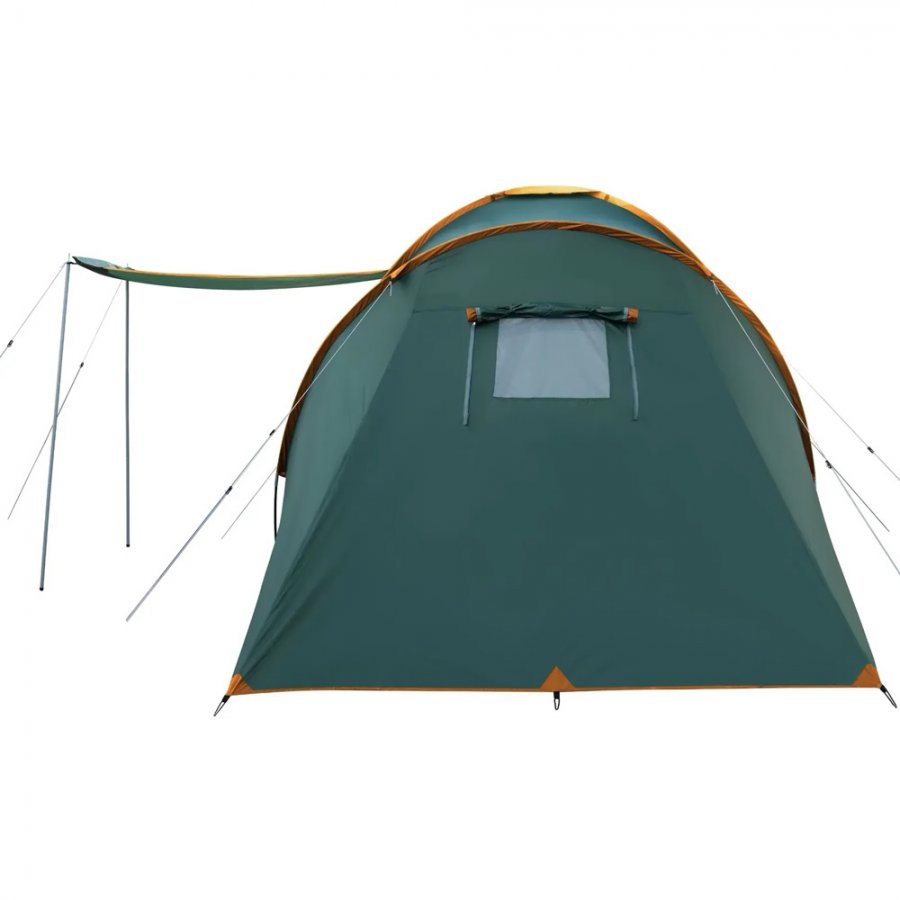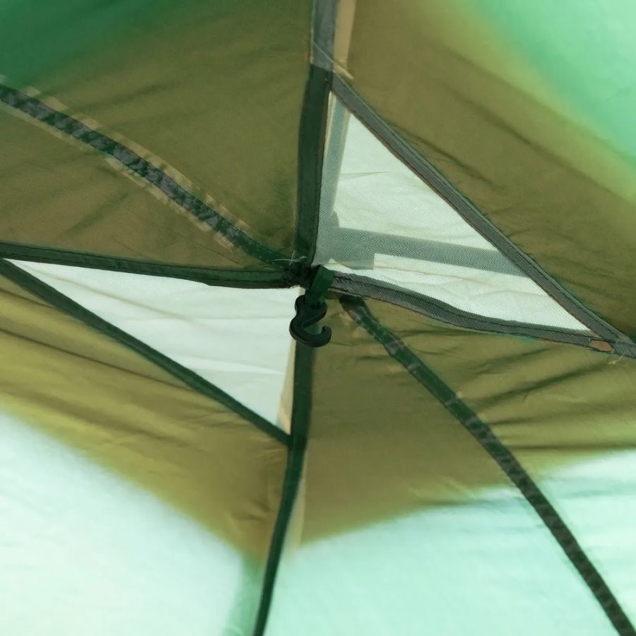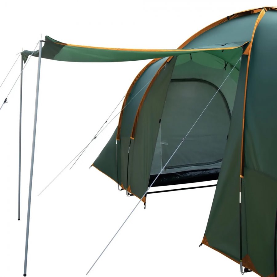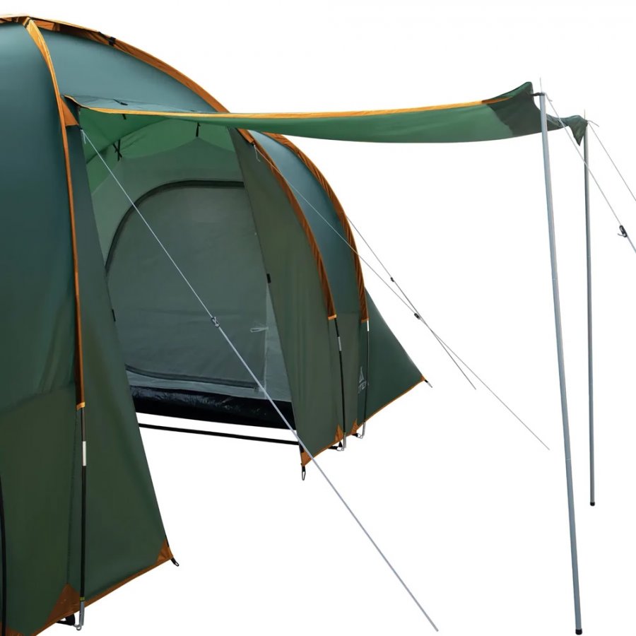 Один большой тамбур посередине палатки — в него поместится кемпинговый столик или пара кресел.