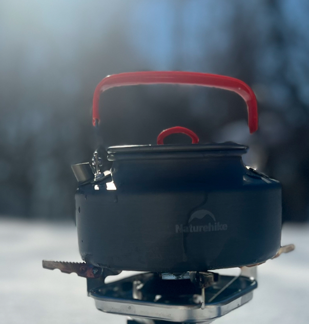 Чайник Naturehike Camping изготовлен из алюминиевого сплава, прочный в использовании, быстро закипит, и вам не понадобится много газа. Чайник с термостойкой складной ручкой, её можно брать даже когда чайник горячий.