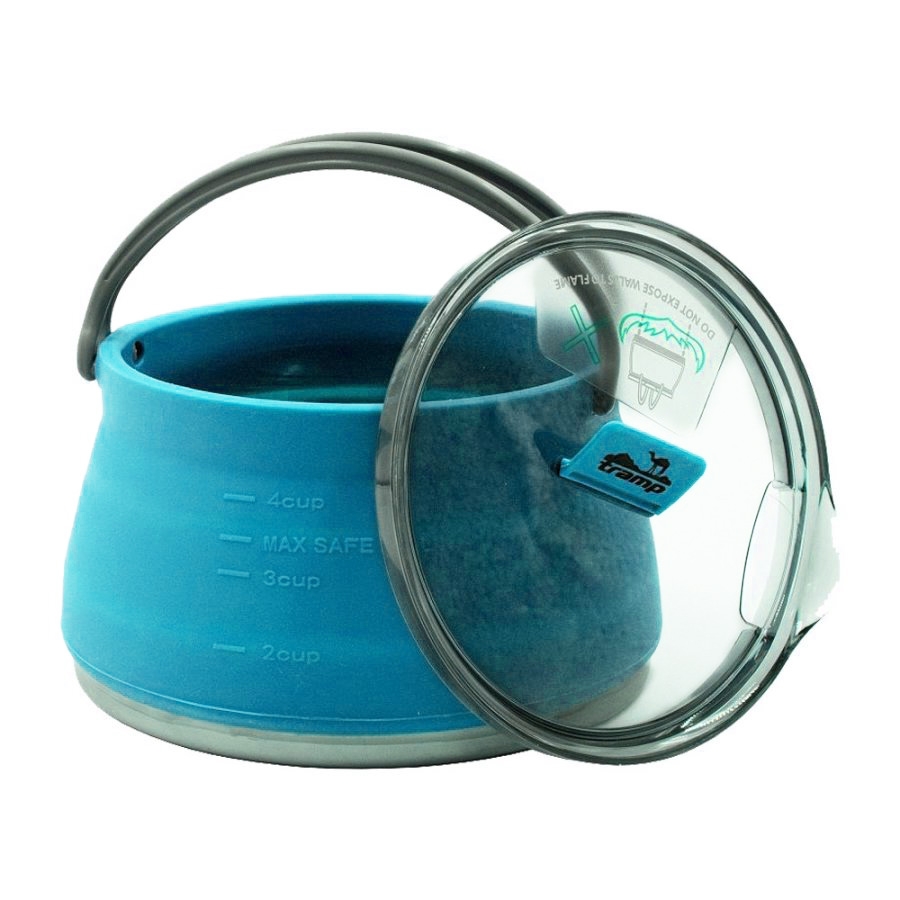 Складной силиконовый чайник со стальным дном Tramp TRC-125. Объём 1 литр.