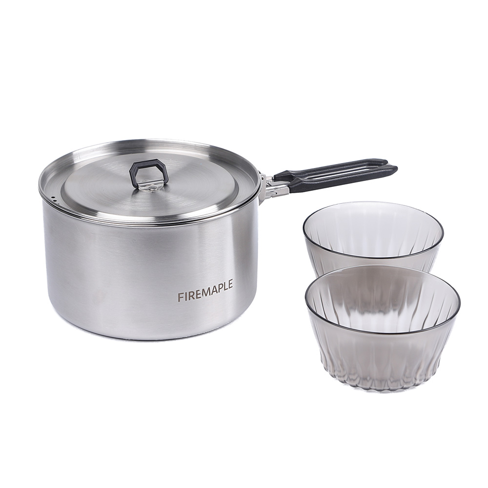 Котелок из нержавеющей стали, объем 1,5 литра. Ручка складывается. В комплекте - 2 миски.
