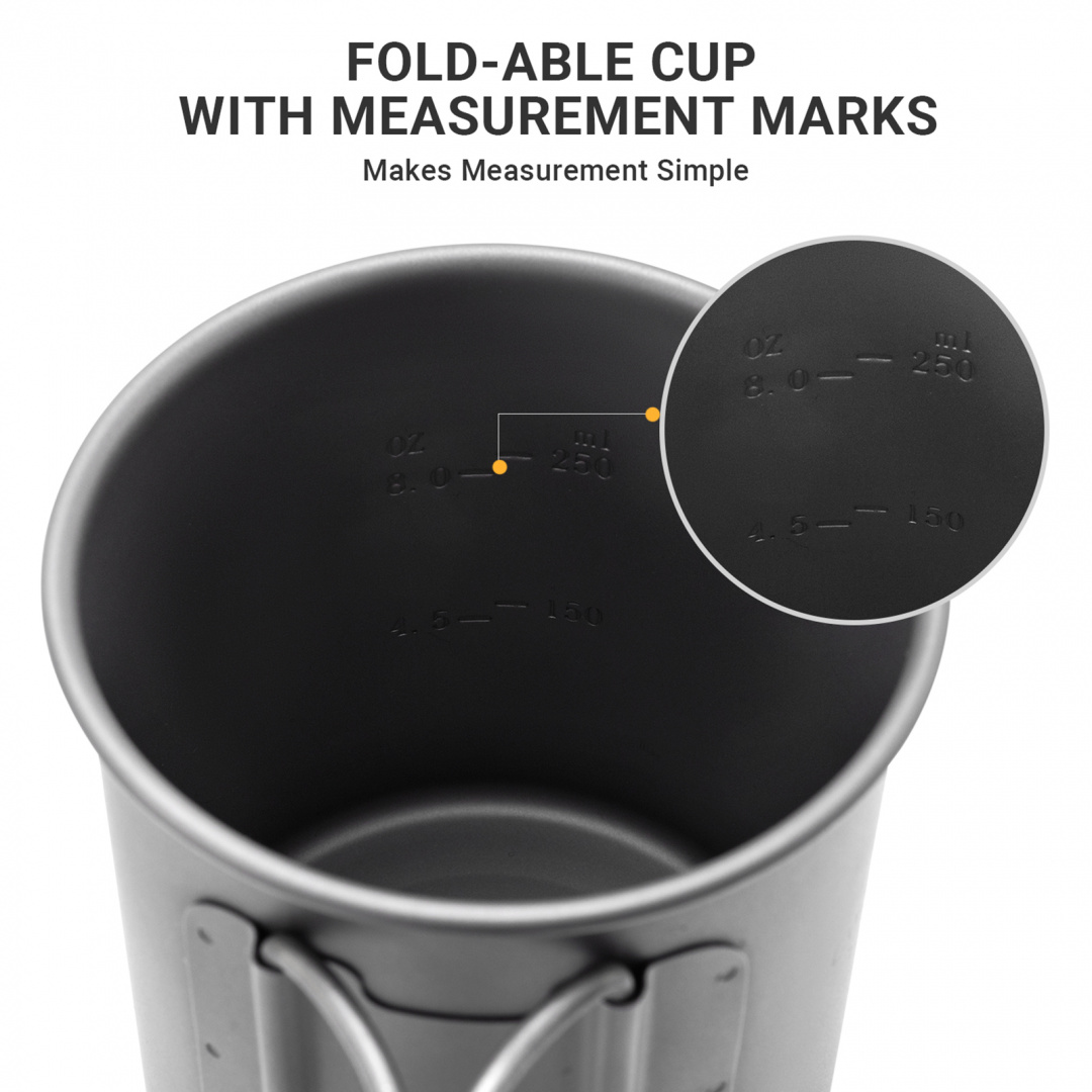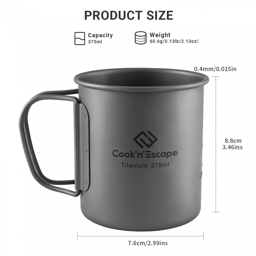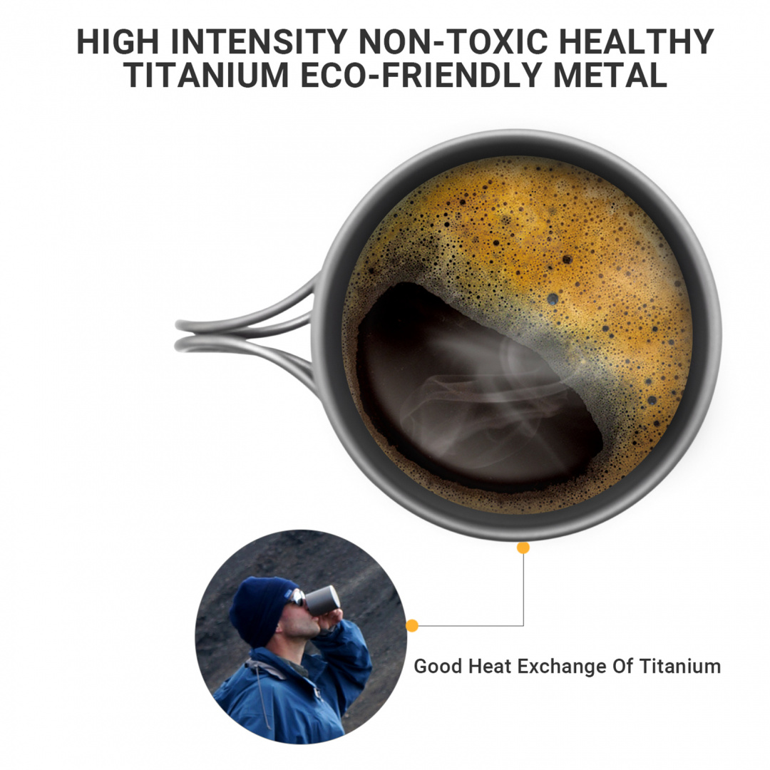 Универсальная титановая кружка может использоваться как небольшой чайник для кипячения, чашка для чая, кофейная кружка, кружка для воды, емкость для подогрева или контейнер для предметов первой необходимости. Можно также использовать в качестве мерного стаканчика!