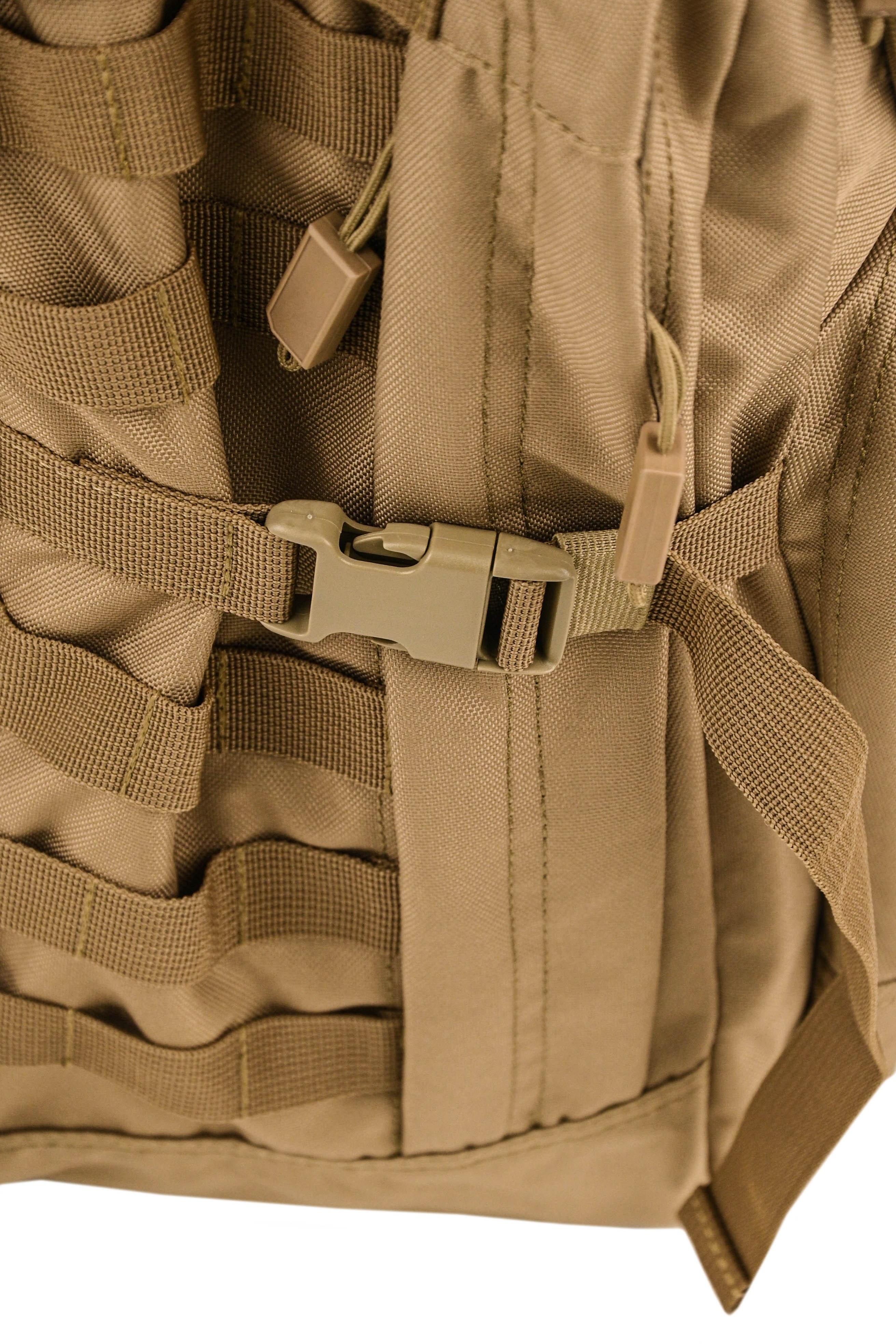 Система быстрого сброса - важный компонент тактического рюкзака. Позволяет за долю секунды сбросить рюкзак, не снимая его через плечи. Быстро сброшенным рюкзаком можно укрыть голову или молниеносно переместить полезное снаряжение со спины в область быстрого доступа.
