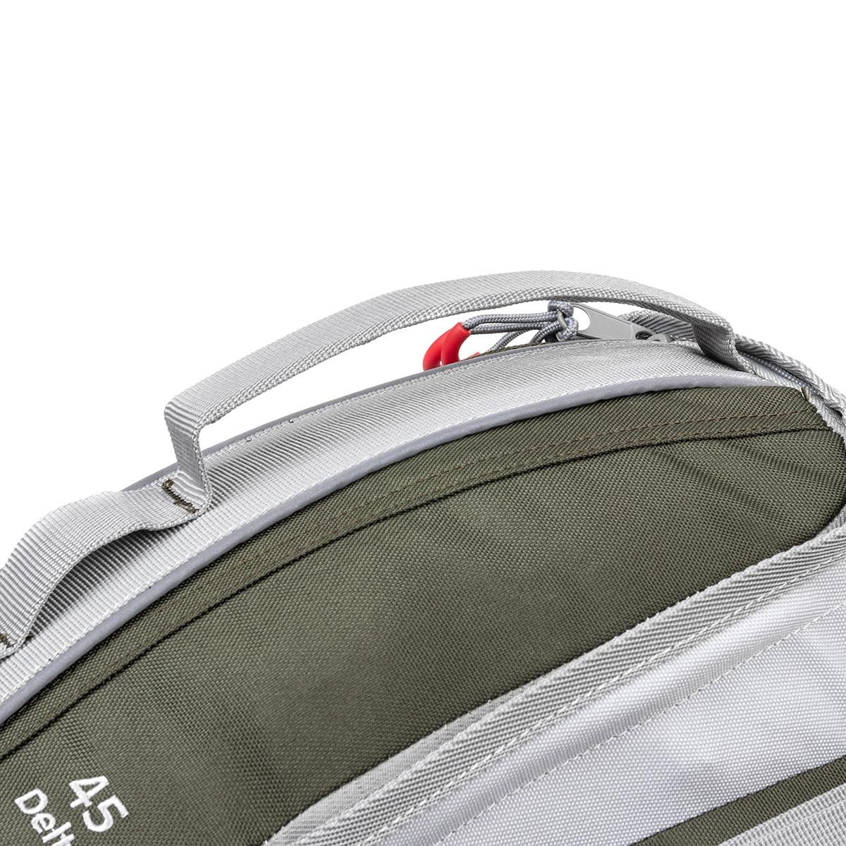 Удобные транспортировочные ручки позволяют легко погрузить рюкзак в поезд или автомобиль.