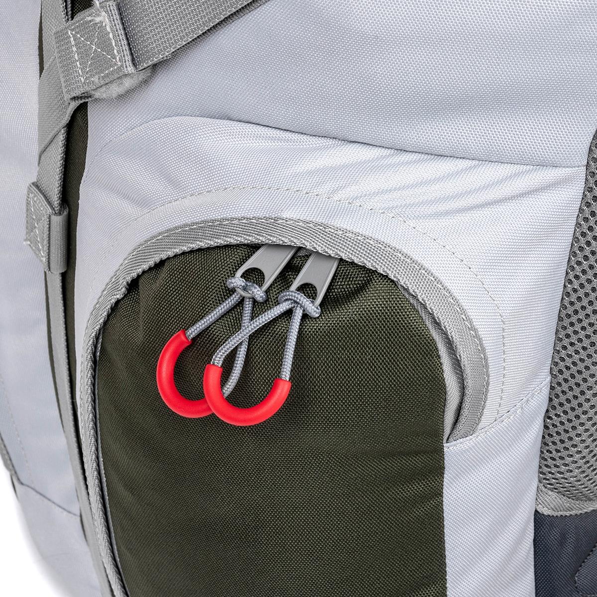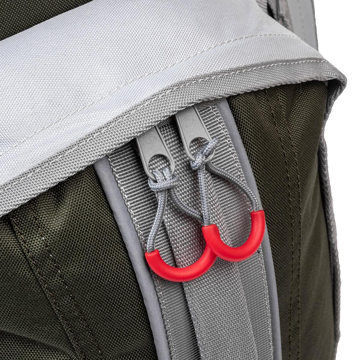 Увеличенное по диаметру основное отделение и три крупных кармана, расположенных на фронтальной и боковых частях рюкзака, обеспечивают большую вместительность.