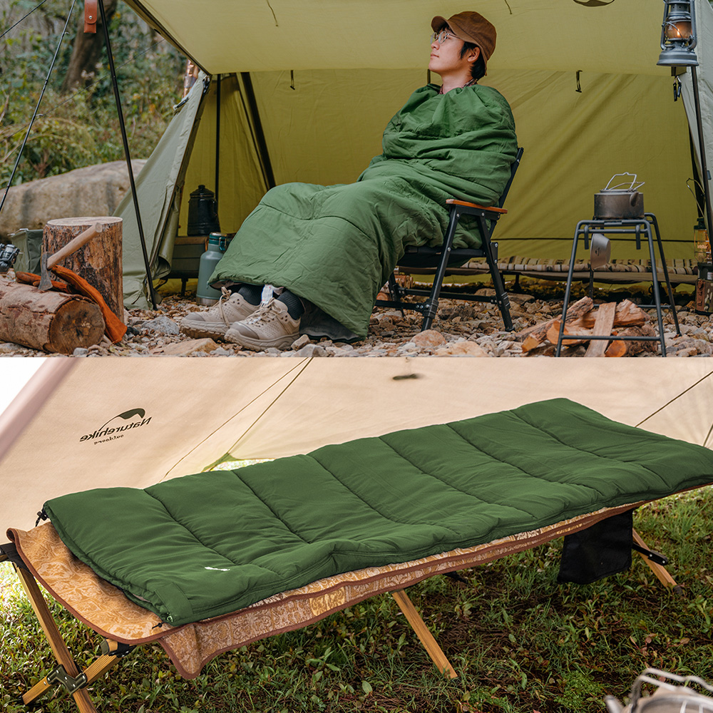 Одним из практичных преимуществ является возможность полностью расстегнуть мешок и использовать его как одеяло. Благодаря этому он становится универсальным спутником в путешествии: можно укрыться вечером у костра, использовать как дополнительный слой или даже как подстилку. Ещё одна удобная функция — соединение двух спальников (левого и правого) в одно большое двуспальное пространство, что идеально для путешествий вдвоем.