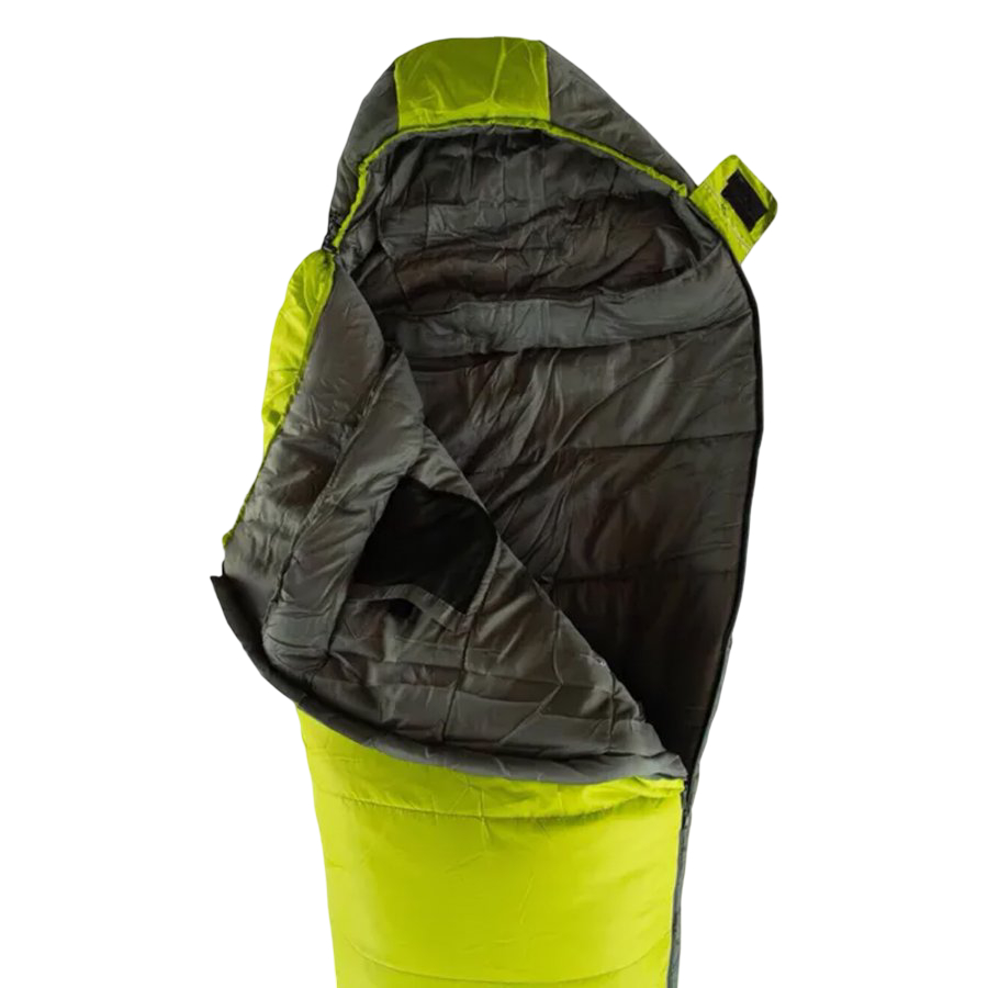 - Утеплённая планка вдоль молнии не пропускает холодный воздух внутрь спального мешка;