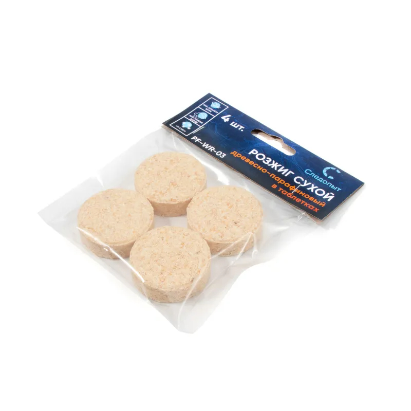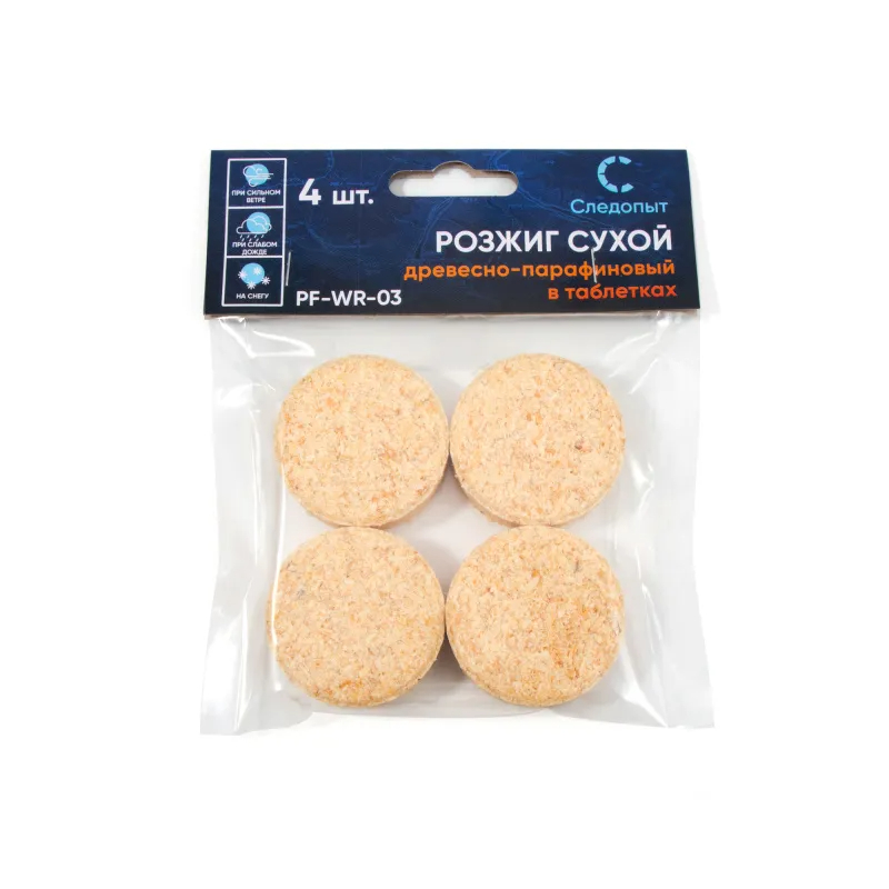 Розжиг сухой, древесно-парафиновый, в таблетках предназначен для розжига костров, сухого топлива в походных печах, каминах и мангалах даже в экстремальных условиях. Экологически чистый и безопасный продукт из натуральной древесины. Легко зажигается от любого источника открытого огня в течение нескольких секунд. Поможет развести костер при сильном ветре, на снегу и даже под дождем. Не намокает, не теряет свойств при измельчении. Время горения от 8 до 12 минут. Поставляется в компактной упаковке с европодвесом. Удобно носить в кармане или рюкзаке. В упаковке 4 шт.