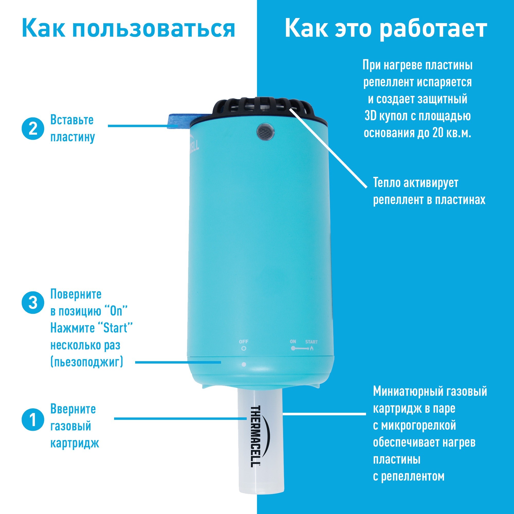 Противомоскитный прибор Thermacell работает по принципу фумигации – в воздух испаряется репеллент, который отпугивает комаров на площади до 20 кв.м.