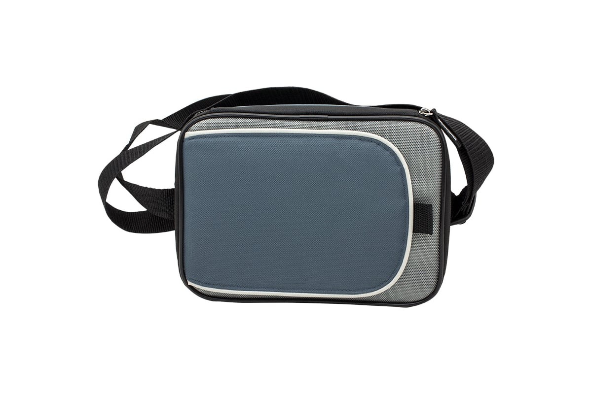 Вертикальная форма сумки удобна для размещения и транспортировки не только продуктов, но бутылок с напитками. Широкий и прочный ремень регулируется по длине для удобства переноски сумки в руках или на плече. На передней части термосумки предусмотрены два фронтальных кармана – один вместительный на застёжке-молнии, второй – сетчатый для салфеток и других полезных мелочей.