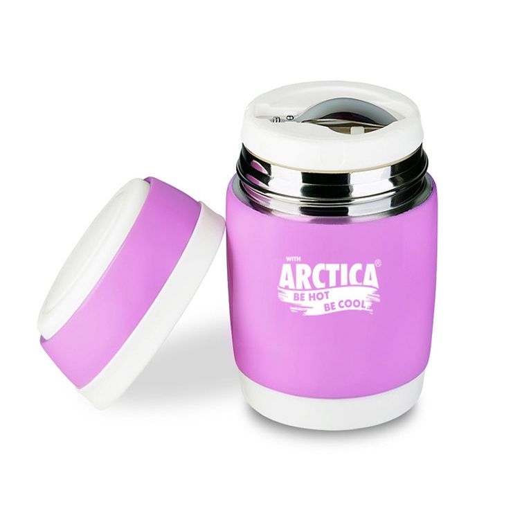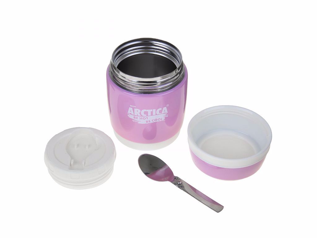 Термос-бочонок Арктика 409-380 выполнен в бело-розовых тонах. Компактный сосуд легко помещается в сумке. Широкое горло диаметром восемь сантиметров дает возможность помещать в посуду первые или вторые блюда.