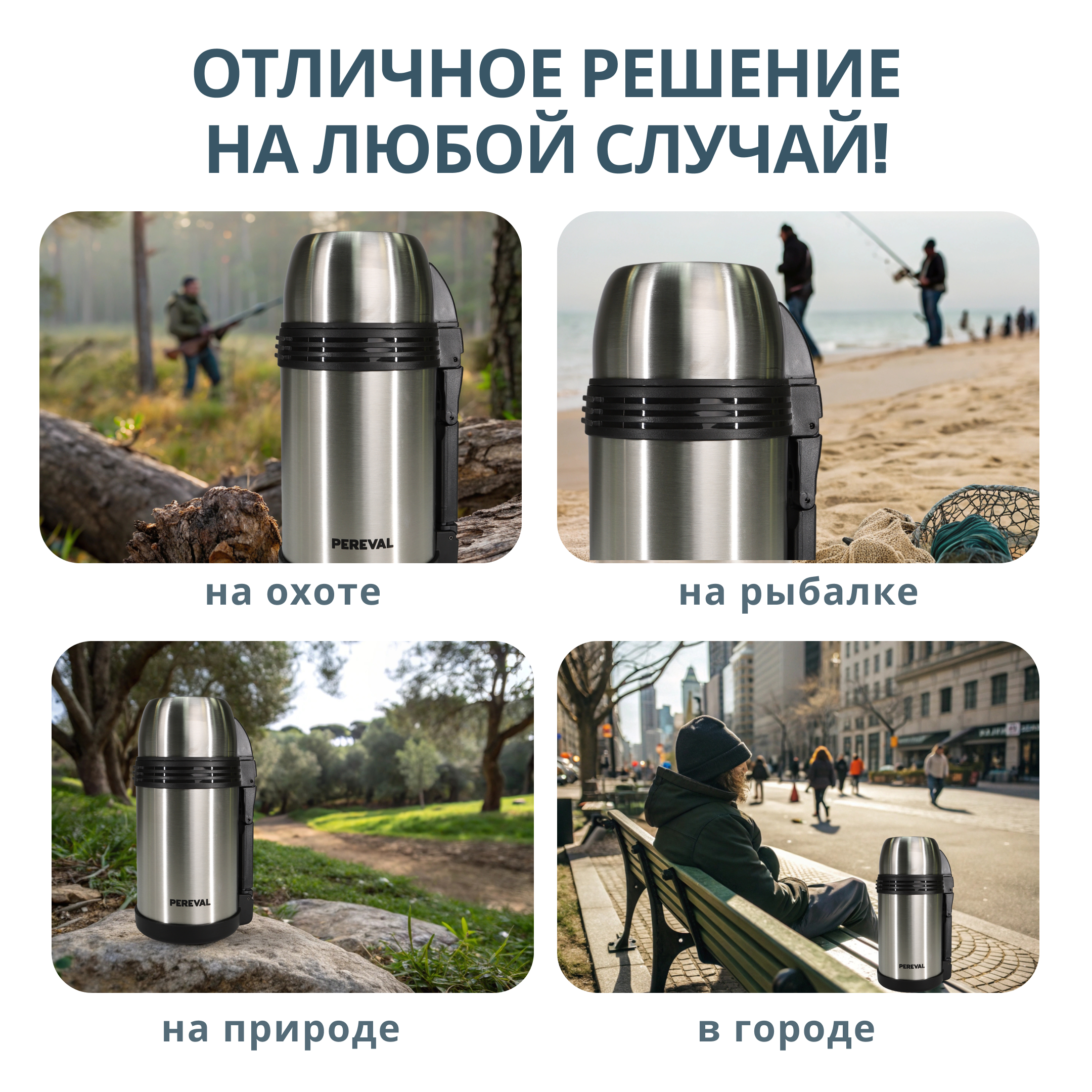 Термоc Pereval отлично подходит для активного отдыха, охоты и рыбалки, так как обладает высокой прочностью и устойчивостью к внешним воздействиям. Термос оснащен двойными стенками с вакуумной изоляцией, что помогает сохранять еду или напитки горячими и холодными в течение продолжительного времени.