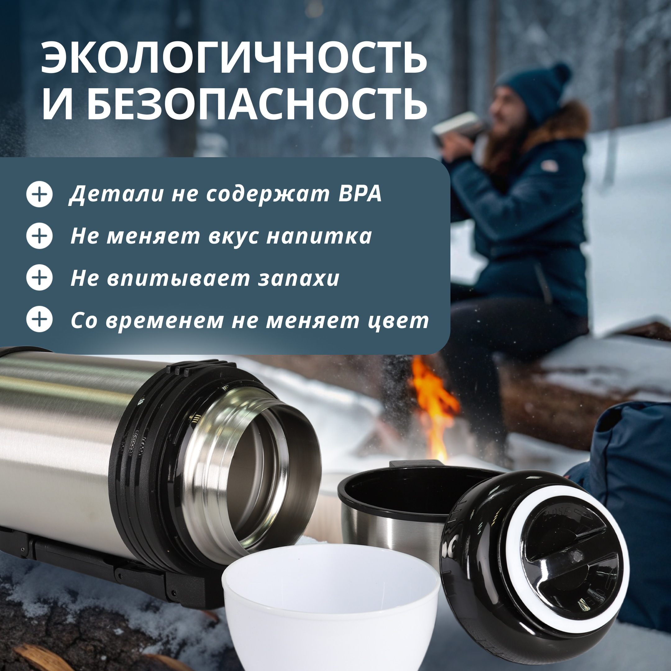 Корпус изготовлен из высококачественной пищевой нержавеющей стали марки 18/818/8 - Классическая нержавеющая сталь, содержит 18 процентов хрома и 8 процентов никеля и называется сталью 18-8Подробнее, которая обеспечивает прочность, долговечность и устойчивость к коррозии. Колба термоса изготовлена из пищевой нержавеющей стали марки 316. Используемые детали не содержат BPABPA Бисфенол А (BPA) - это химическое вещество, которое производят в больших количествах и используют в производстве поликарбонатных пластиков и эпоксидных смол.Подробнее, что делает термос безопасным для хранения различных напитков, включая горячие и холодные. Модель оснащена удобной складной ручкой для переноски.