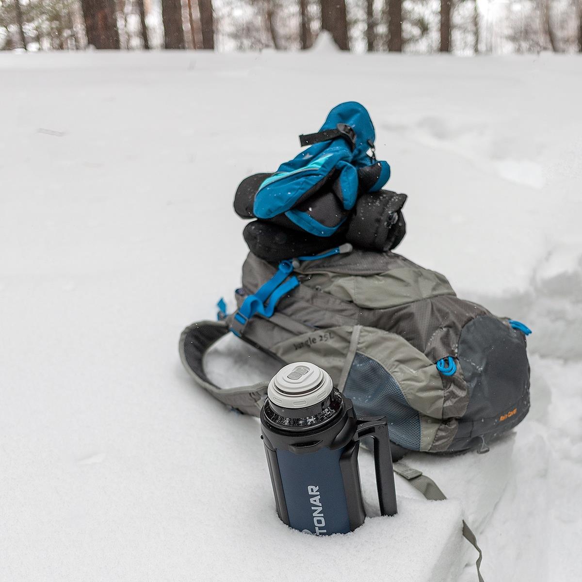 Универсальный термос оснащен двойными стенками с вакуумной изоляцией, которая позволяет сохранять напитки горячими или холодными длительное время.